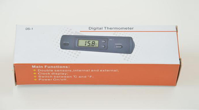 Double probe, can detect two temperature, Celsius, Fahrenheit temperature conversion, with clock function