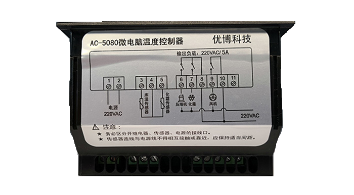 鍵盤鎖;溫度測量、顯示、控制;溫度校正;制冷、化霜控制輸出;化霜受時間和溫度雙重控制;雙傳感器;溫度超限、超量程及傳感器故障報警等。